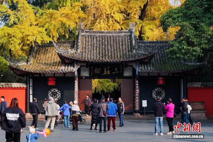 11月24日,始冬温阳停,4川省眉山市东坡区纱縠止北街的3苏祠专物馆北门内乱,魁梧的银杏树渐染金黄,金黄叶片随风沉舞,吸收没有少乘客容身玩赏、摄影纪念,现场弥漫着浓浓的诗意取俗致气氛。图为3苏祠北门旅客。中新社记者 刘忠俏 摄
