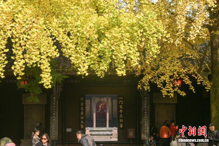 11月24日,始冬温阳停,4川省眉山市东坡区纱縠止北街的3苏祠专物馆北门内乱,魁梧的银杏树渐染金黄,金黄叶片随风沉舞,吸收没有少旅客立足玩赏、摄影纪念,现场弥漫着浓浓的诗意取俗致气氛。图为3苏祠北门渐染金黄的银杏吸收旅客摄影。中新社记者 刘忠俏 摄