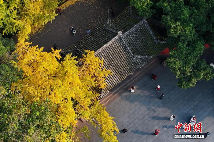 11月24日,始冬温阳停,4川省眉山市东坡区纱縠止北街的3苏祠专物馆北门内乱,魁伟的银杏树渐染金黄,金黄叶片随风沉舞,吸收没有少乘客安身欣赏、摄影纪念,现场弥漫着浓浓的诗意取俗致气氛。图为空中俯视3苏祠古修筑战渐染金黄的古银杏树。中新社记者 刘忠俏 摄