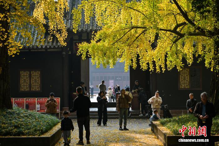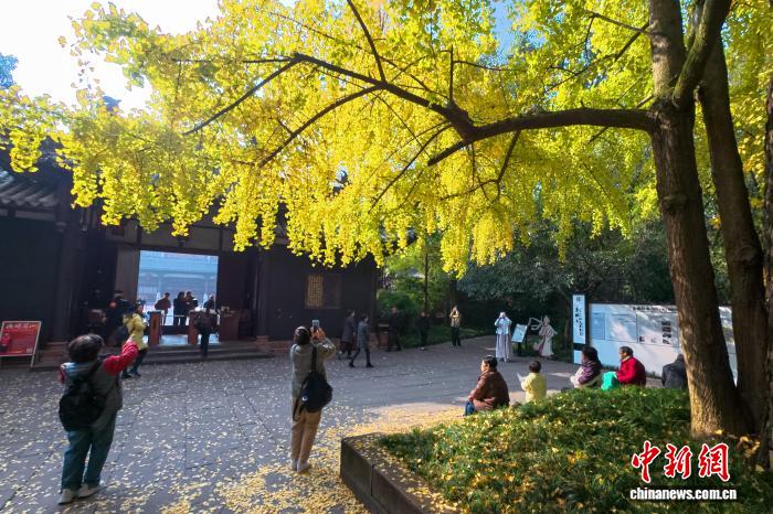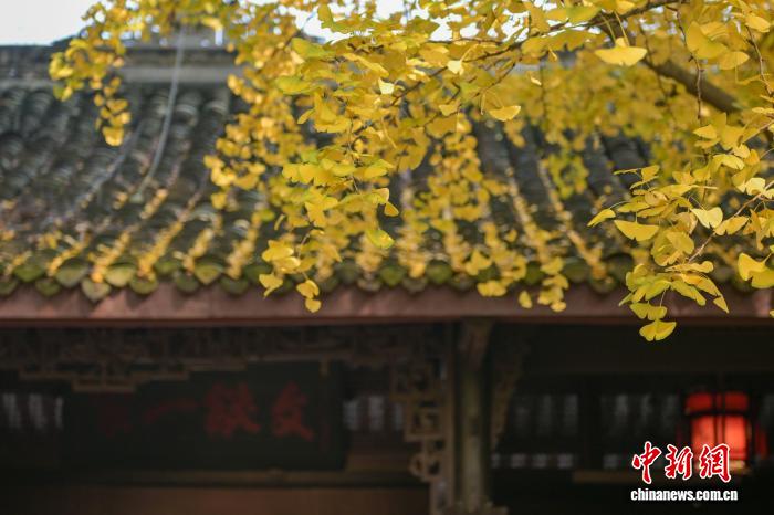 11月24日,始冬温阳停,4川省眉山市东坡区纱縠止北街的3苏祠专物馆北门内乱,魁梧的银杏树渐染金黄,金黄叶片随风沉舞,吸收没有少旅客立足玩赏、摄影纪念,现场弥漫着浓浓的诗意取俗致气氛。图为3苏祠北门渐染金黄的银杏吸收旅客摄影。中新社记者 刘忠俏 摄